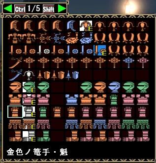 下段の防具はほぼスキルをつめた実用系。耐震装備とか採集装備とか。