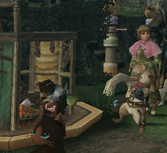 たまーにある、回復剤のプレゼントで走りよってきたのに気づかずに猫に突進したら、アイルー広場で三女はずっと自分の周りをくるくるくるくる回ってました。