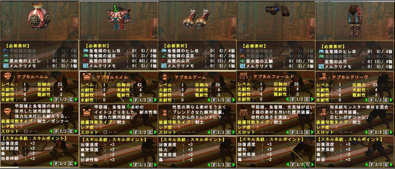↓下はアプカル剣士の素材等