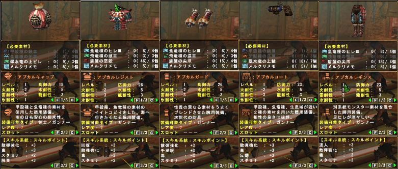 ↓アプカルガンナー素材等